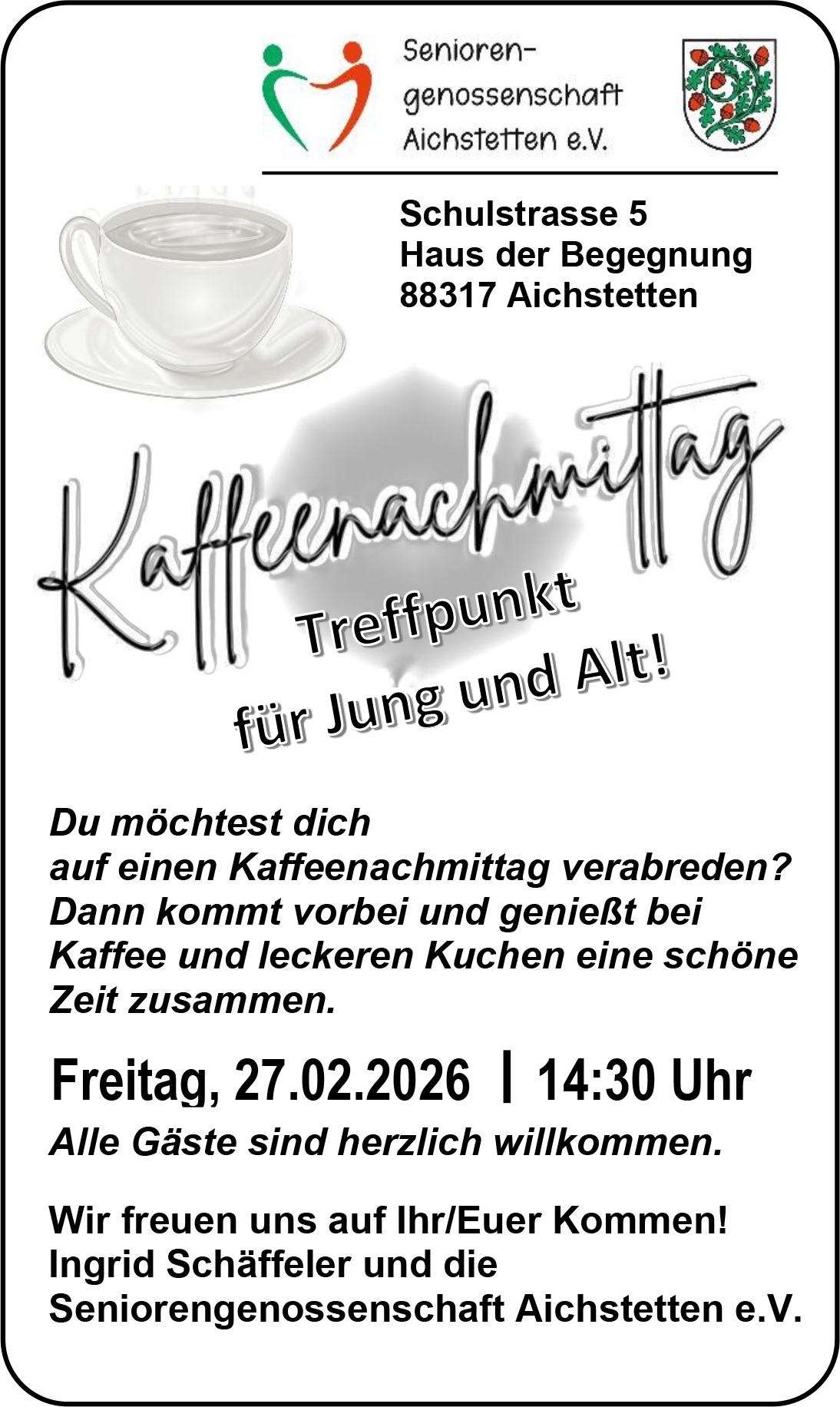 Kaffeenachmittag - Treffpunkt für Jung und Alt