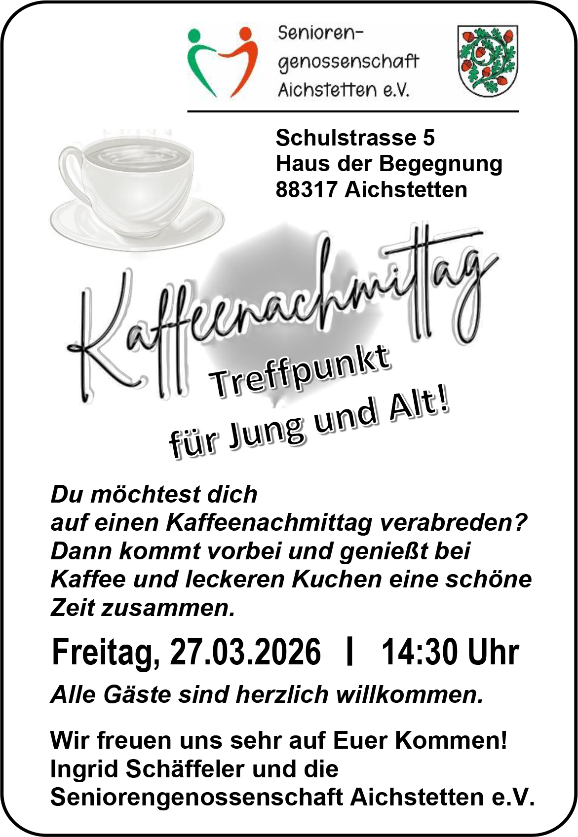 Kaffeenachmittag - Treffpunkt für Jung und Alt